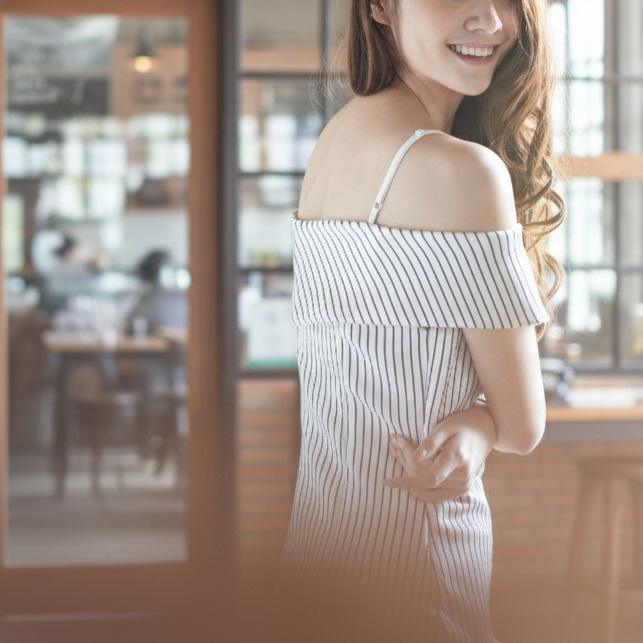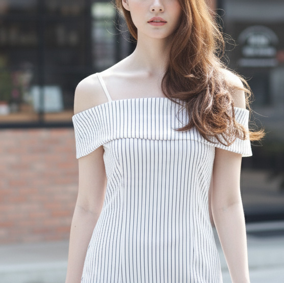 เผยผิวสวย กับเดรสสไตล์ Lady เปิดไหล่ทรงสวย เปะมากๆ นะคะ ผ้ายืดเนื้อหนาเก็บทรงสวยคะ ลายทางใส่แล้วยิ่งแลดูผอมเพรียว ใส่สวยจนหนุ่มๆ ต้องเหลียวหลัง