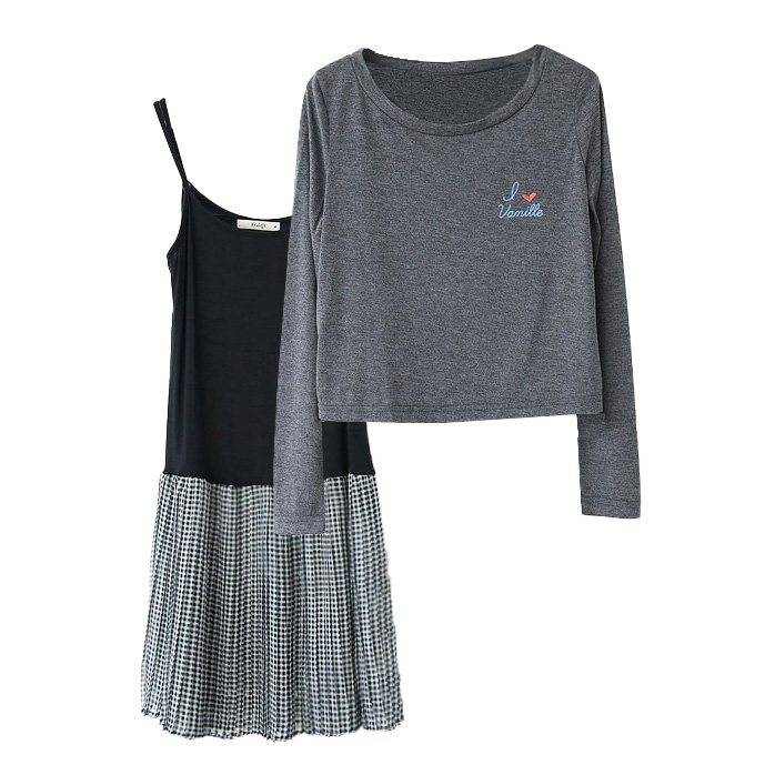 งานตัดของทางร้าน เดรส set 2 ซื้อ 1 ได้ถึง 2 ชิ้นตัวนี้ดีไซน์น่ารักสุดๆ ด้านนอกเป็นเสื้อผ้าพื้นสีเทาสกรีนลาย I love Vanille ด้านในเป็นเดรสยาวตัดต่อด้วยกระโปรงอัดพลีท เนื้อผ้าเกรดดี ลายสก็อตฮ็อตฮิต ตัวนี้ใส่สบายคะ เดรสสายปรับได้ตามชอบ สาวๆ ซื้อ 1 ได้ถึง 2 เลยน้า เสื้อใส่แยก นำไปแมชกับเสื้อผ้าอื่นๆ ในตู้ได้เลยนะคะ คุ้มจริงๆ