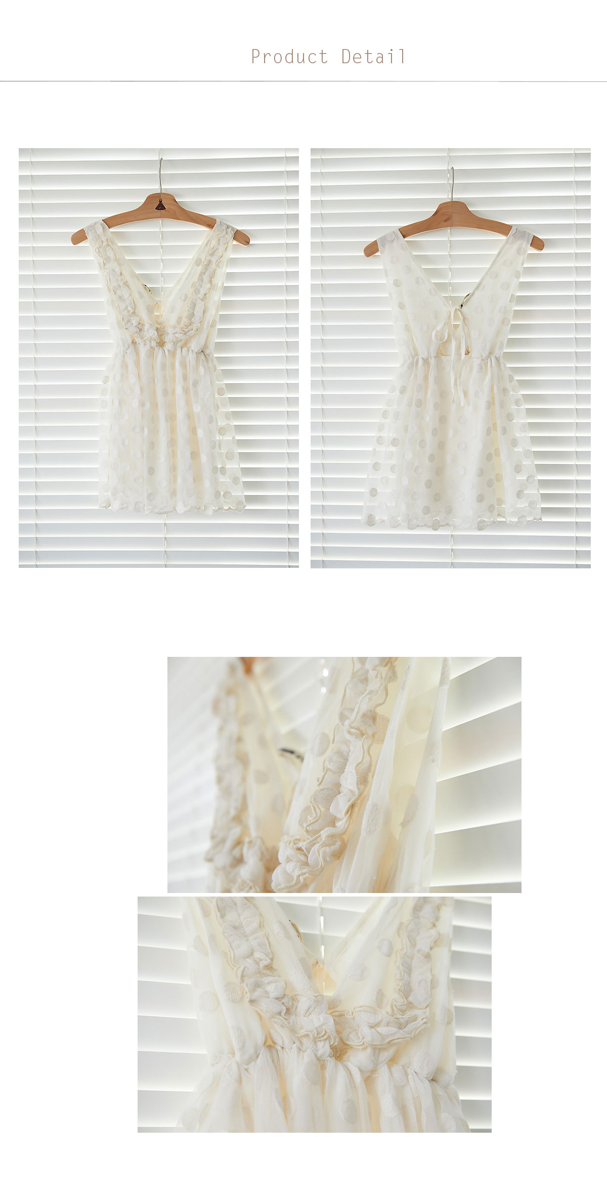 เสื้อผ้าโปร่ง ตัดต่อผ้าตาข่ายเกรดดี ทอลวดลายด็อททั้งตัว เก๋ที่ด้านหลังผูกโบ มีซับในทั้งตัว การันตีด้วย แบรนด์ showroom สาวหวานซ่อนเปรี้ยว ไม่ควรพลาดคะ