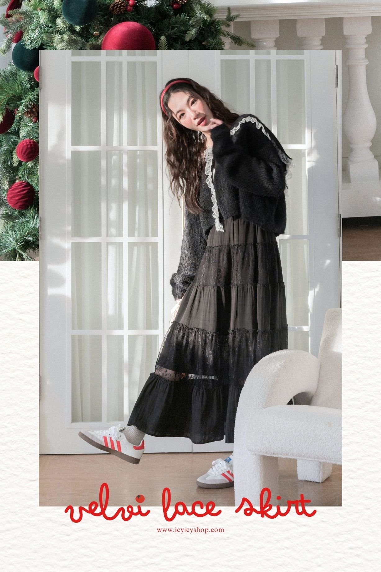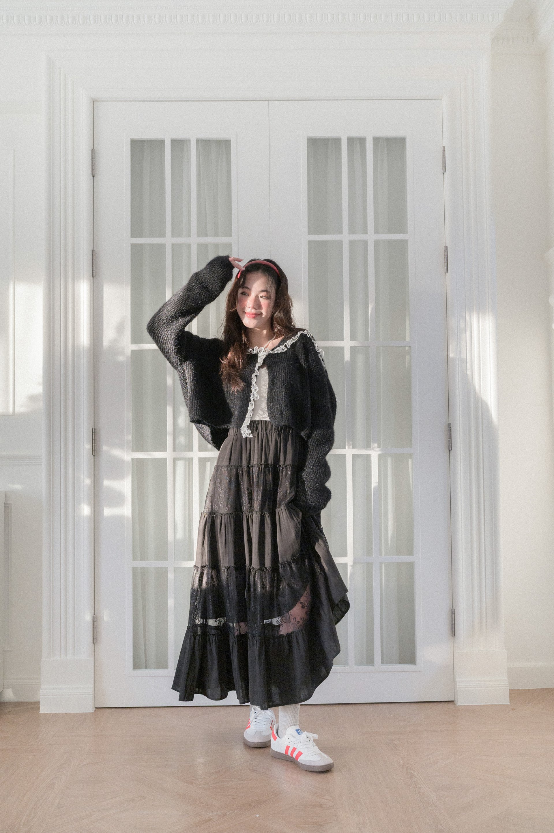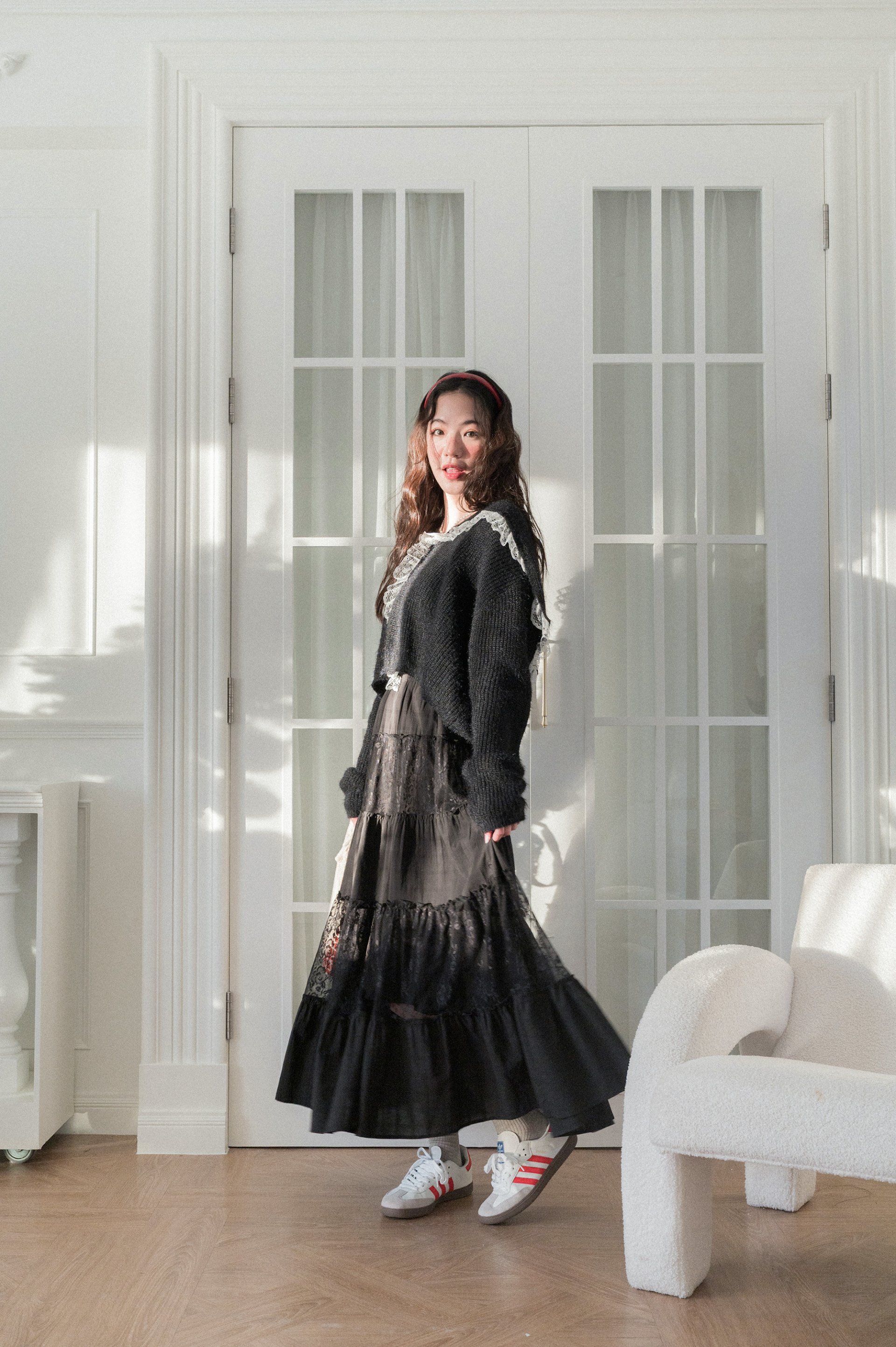 กระโปรง Maxi ตัดต่อผ้า cotton texture มีลวดลายในตัว ตัดต่อผ้าลูกไม้นิ่มๆ โทนเข้มที่มีความหรูและโรแมนติกในเวลาเดียวกัน ลูกไม้ลายละเอียด ฟูเบา มีมิติ ใส่แล้วดูสวยเพรียวและขาเรียวทรงเอวสูงเก็บส่วนเกินได้ดี ซับในสองชั้นไม่บาง ไม่โป๊ เอวยางยืดได้เยอะ เหมาะกับงานเย็น ดินเนอร์ หรือวันที่ต้องการลุคหวานแบบ grown-up