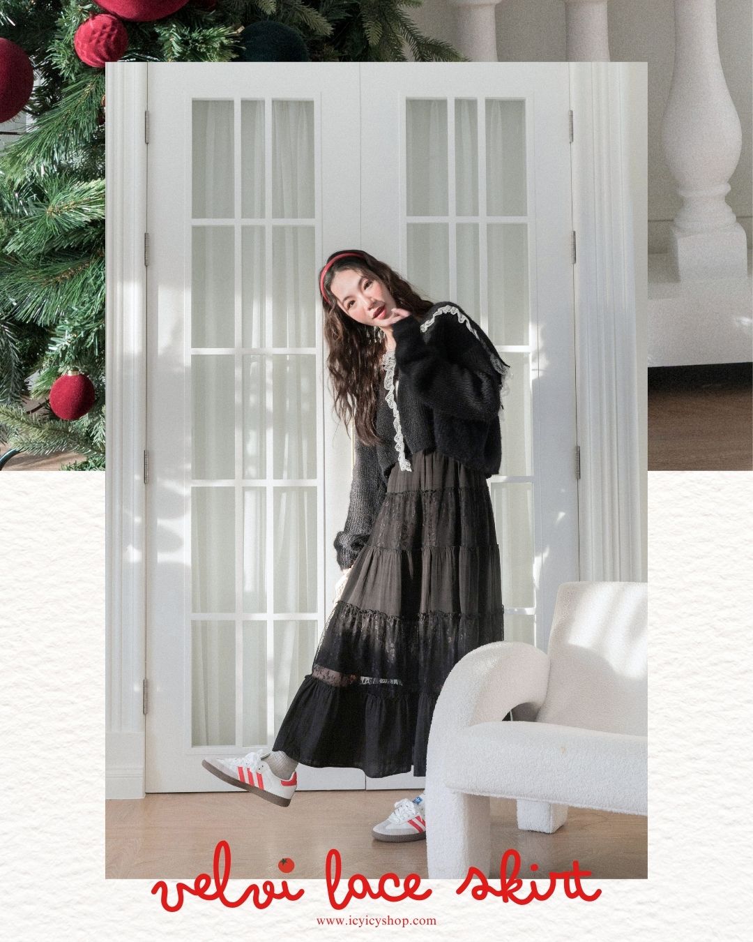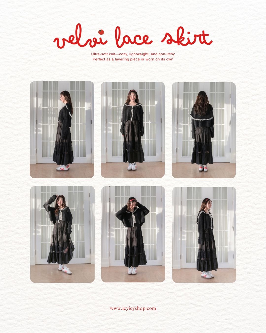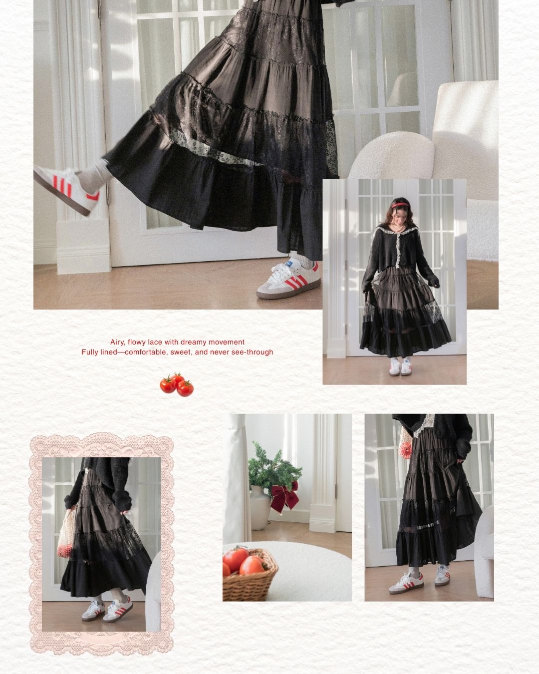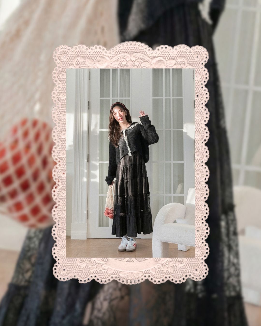 กระโปรง Maxi ตัดต่อผ้า cotton texture มีลวดลายในตัว ตัดต่อผ้าลูกไม้นิ่มๆ โทนเข้มที่มีความหรูและโรแมนติกในเวลาเดียวกัน ลูกไม้ลายละเอียด ฟูเบา มีมิติ ใส่แล้วดูสวยเพรียวและขาเรียวทรงเอวสูงเก็บส่วนเกินได้ดี ซับในสองชั้นไม่บาง ไม่โป๊ เอวยางยืดได้เยอะ เหมาะกับงานเย็น ดินเนอร์ หรือวันที่ต้องการลุคหวานแบบ grown-up