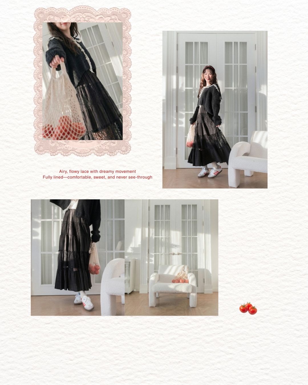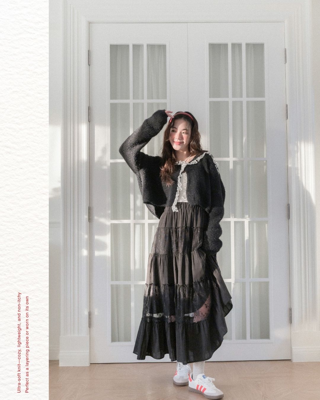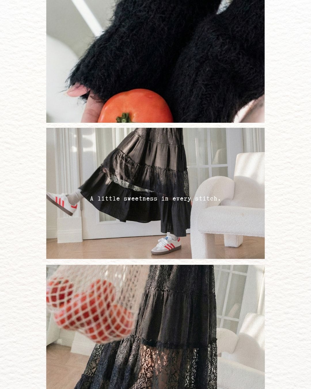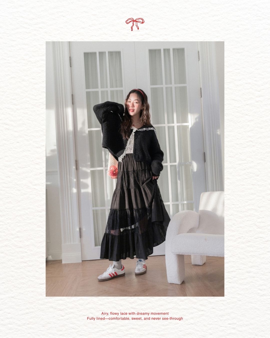 กระโปรง Maxi ตัดต่อผ้า cotton texture มีลวดลายในตัว ตัดต่อผ้าลูกไม้นิ่มๆ โทนเข้มที่มีความหรูและโรแมนติกในเวลาเดียวกัน ลูกไม้ลายละเอียด ฟูเบา มีมิติ ใส่แล้วดูสวยเพรียวและขาเรียวทรงเอวสูงเก็บส่วนเกินได้ดี ซับในสองชั้นไม่บาง ไม่โป๊ เอวยางยืดได้เยอะ เหมาะกับงานเย็น ดินเนอร์ หรือวันที่ต้องการลุคหวานแบบ grown-up