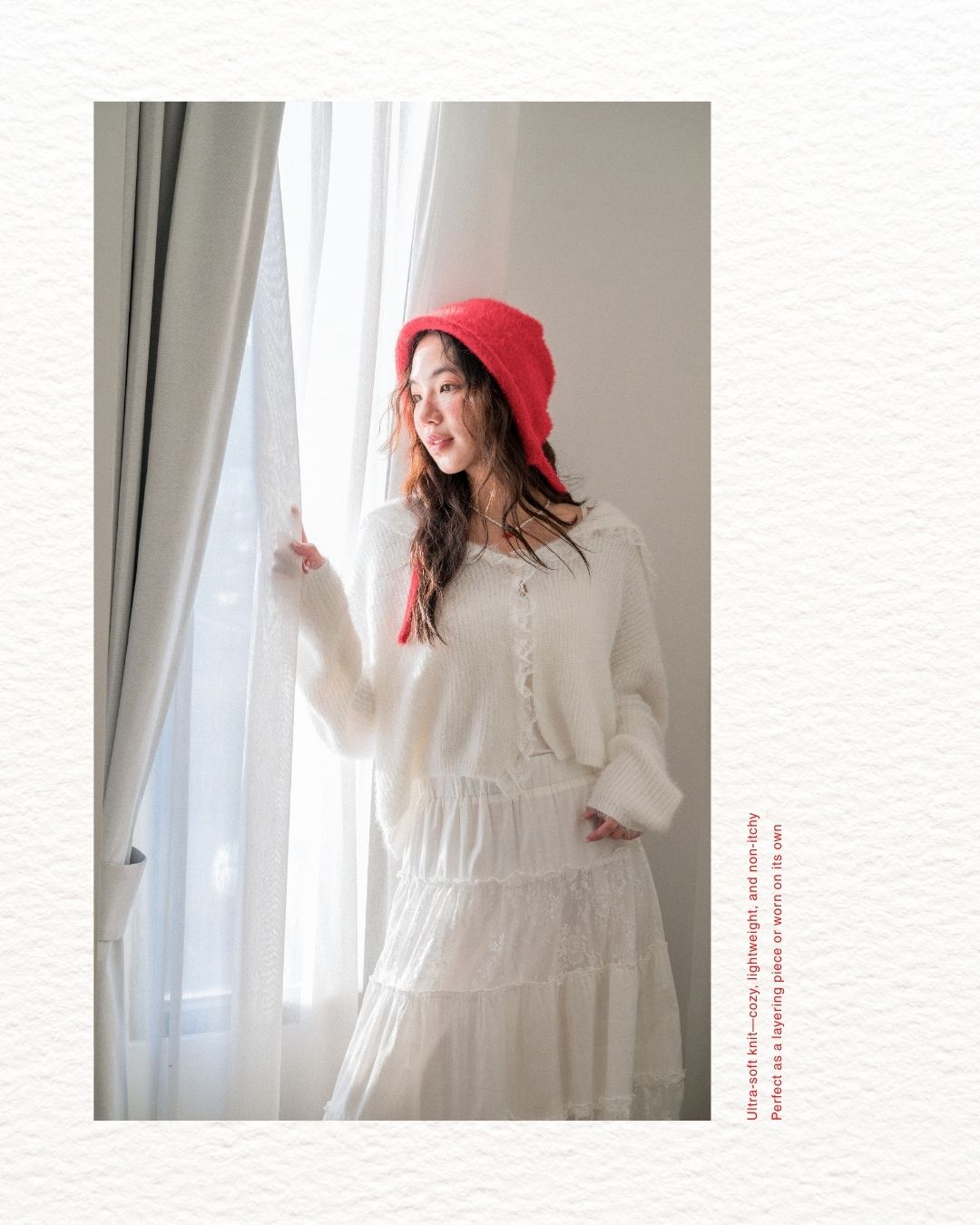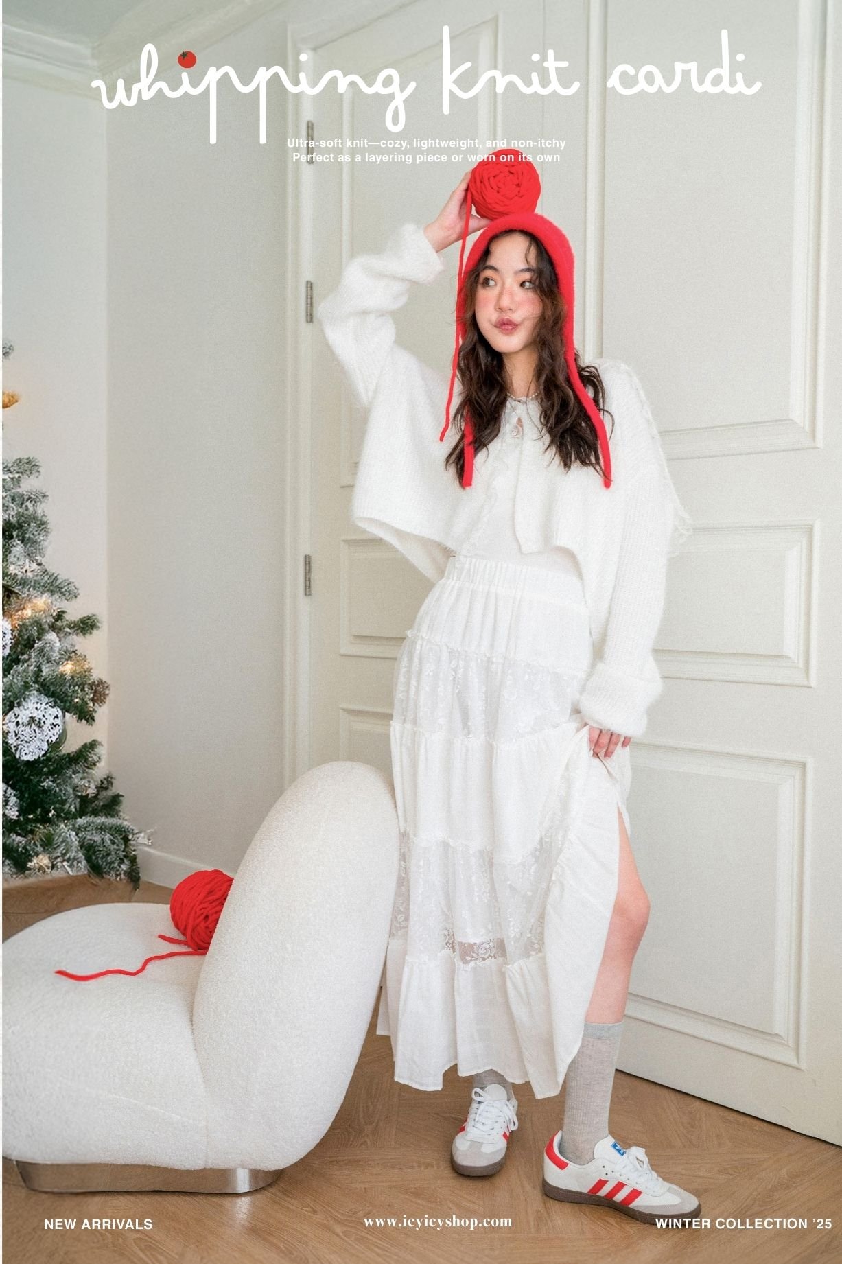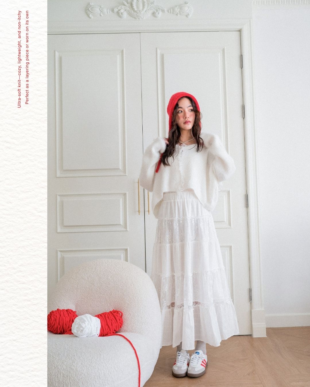 คาร์ดิแกนผ้าไหมพรม ทอเนื้อนุ่มพิเศษ ใส่แล้วอบอุ่นแบบไม่หนักตัว ผ้าไม่คัน ไม่ระคายผิวใส่สะดวกทั้งแบบคลุมและแบบติดกระดุม ทรง Oversize ลุคหวานละมุน ดีเทลกุ้นลูกไม้ กระดุมหวานแบบเกาหลี เพิ่มความน่ารักคิ้วๆ ให้ทุกลุค