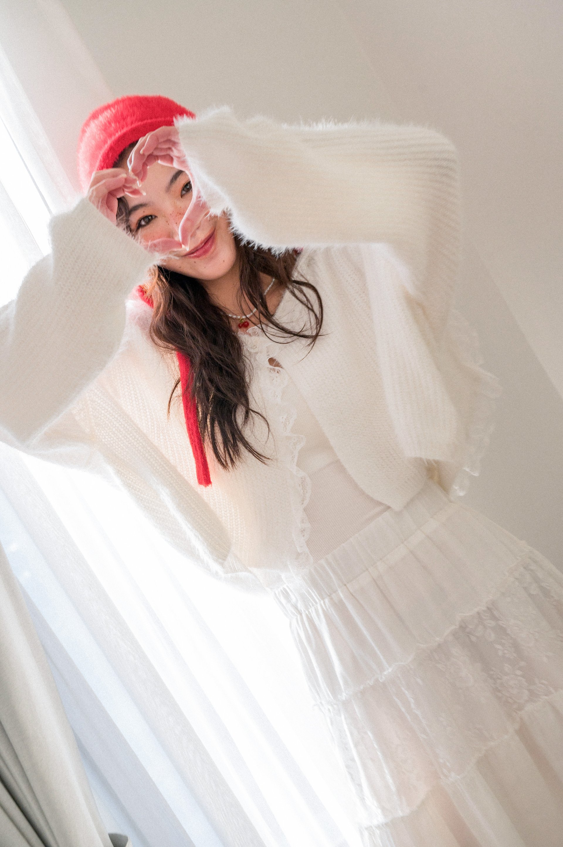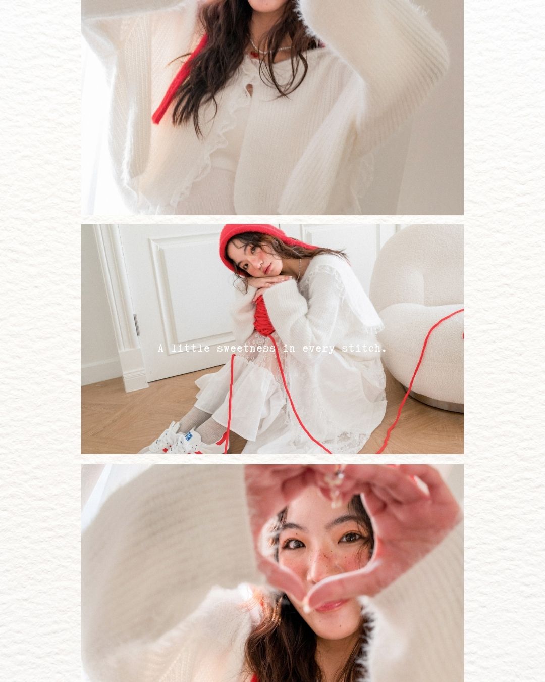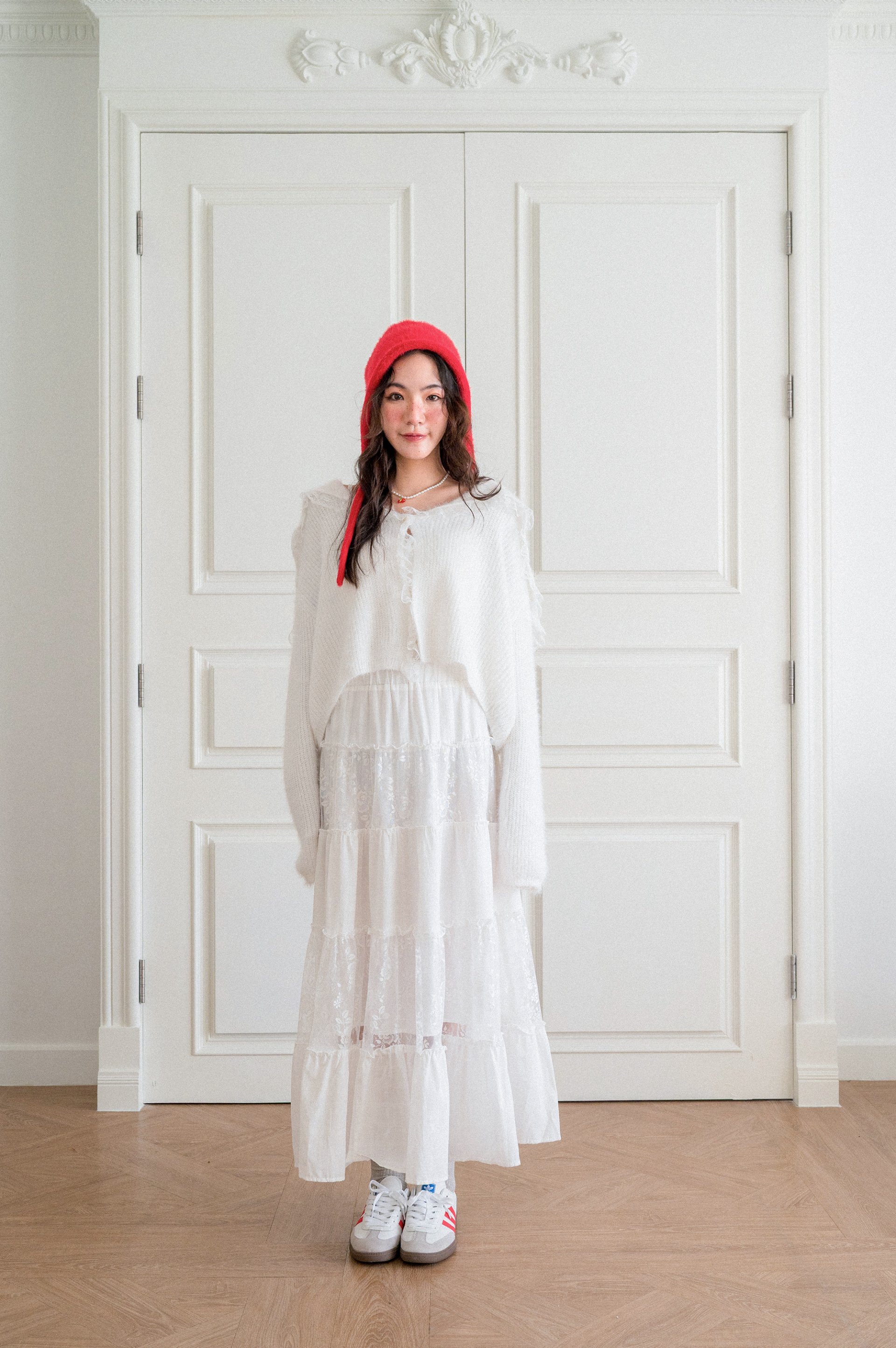 คาร์ดิแกนผ้าไหมพรม ทอเนื้อนุ่มพิเศษ ใส่แล้วอบอุ่นแบบไม่หนักตัว ผ้าไม่คัน ไม่ระคายผิวใส่สะดวกทั้งแบบคลุมและแบบติดกระดุม ทรง Oversize ลุคหวานละมุน ดีเทลกุ้นลูกไม้ กระดุมหวานแบบเกาหลี เพิ่มความน่ารักคิ้วๆ ให้ทุกลุค