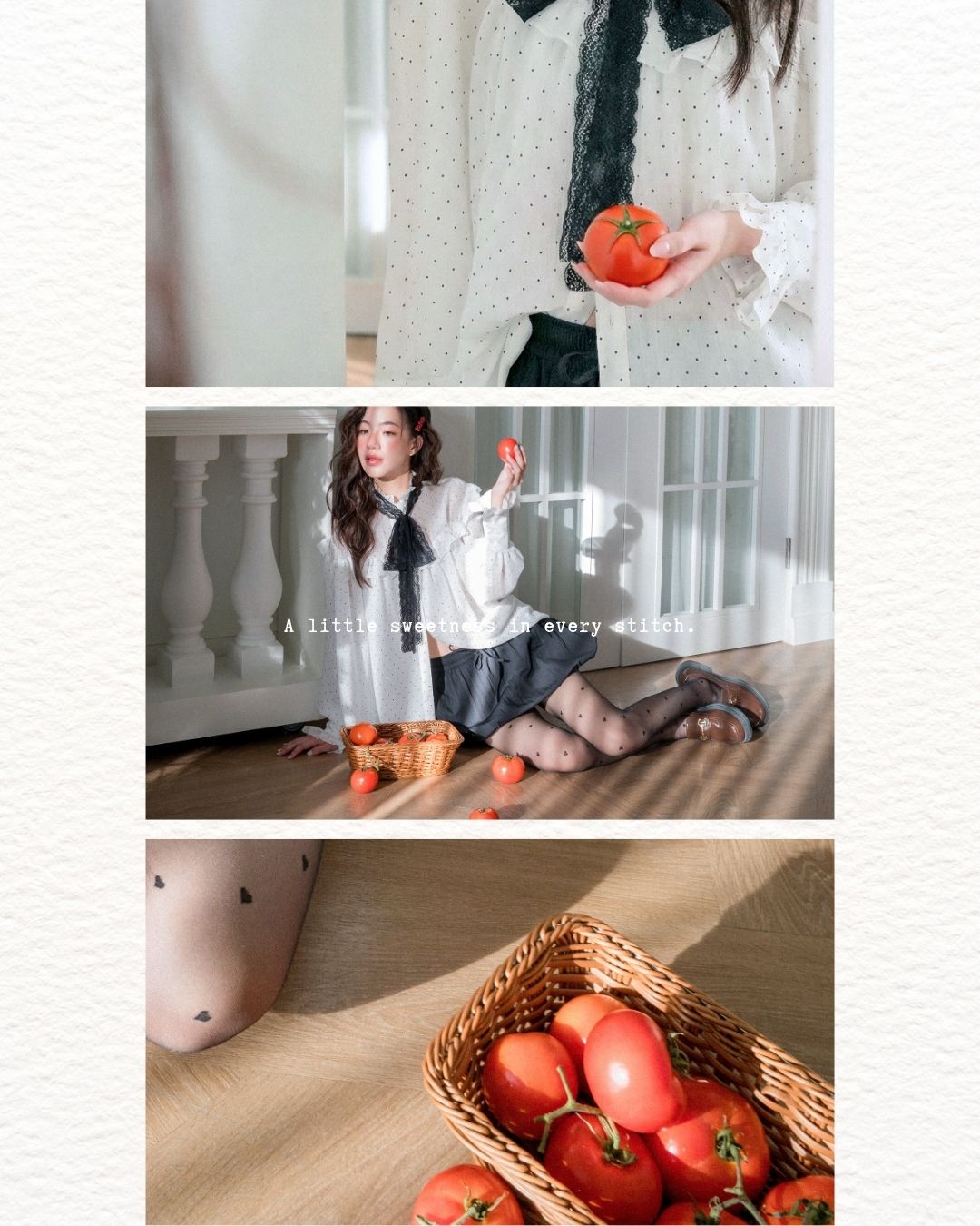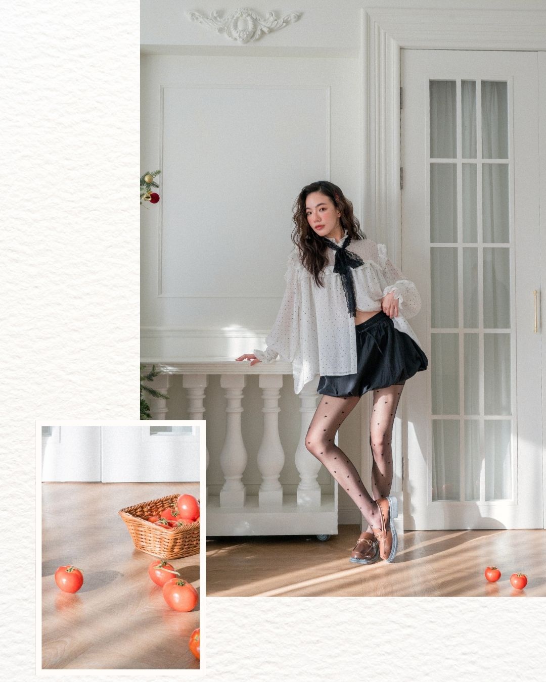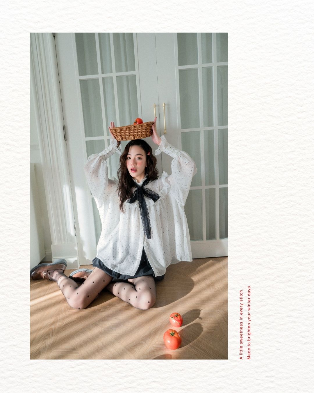 จุดเด่น:  ลายจุดมินิมอล / หน้าสว่าง / ผ้าใส่สบายนุ่มลื่น / ใส่ง่ายทุกวัน / แมทช์ได้หลากหลาย
