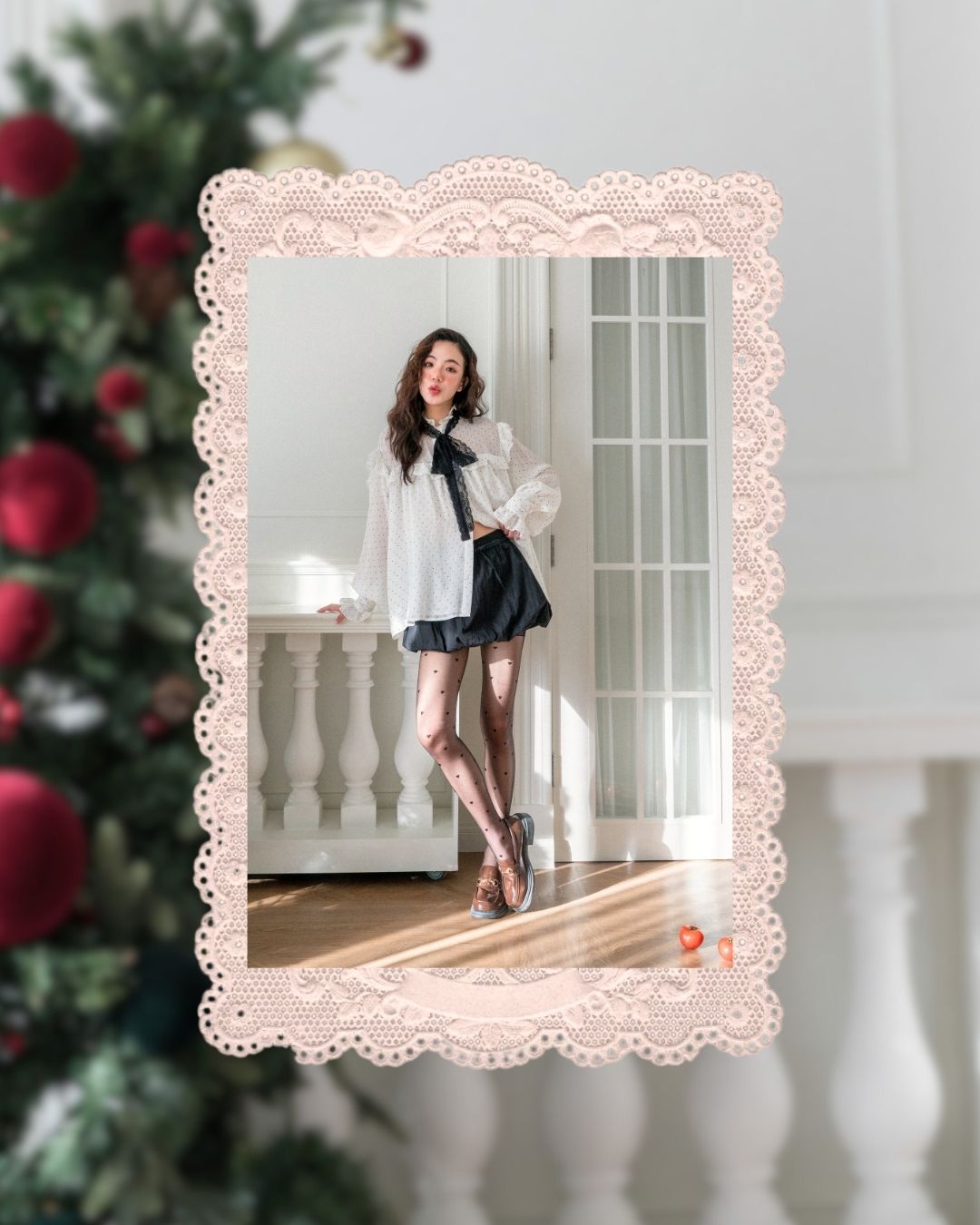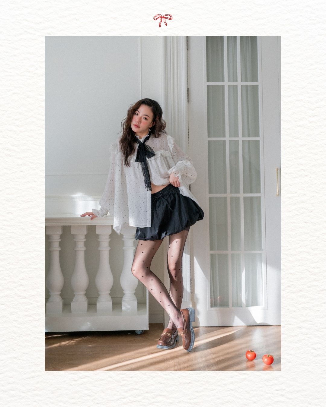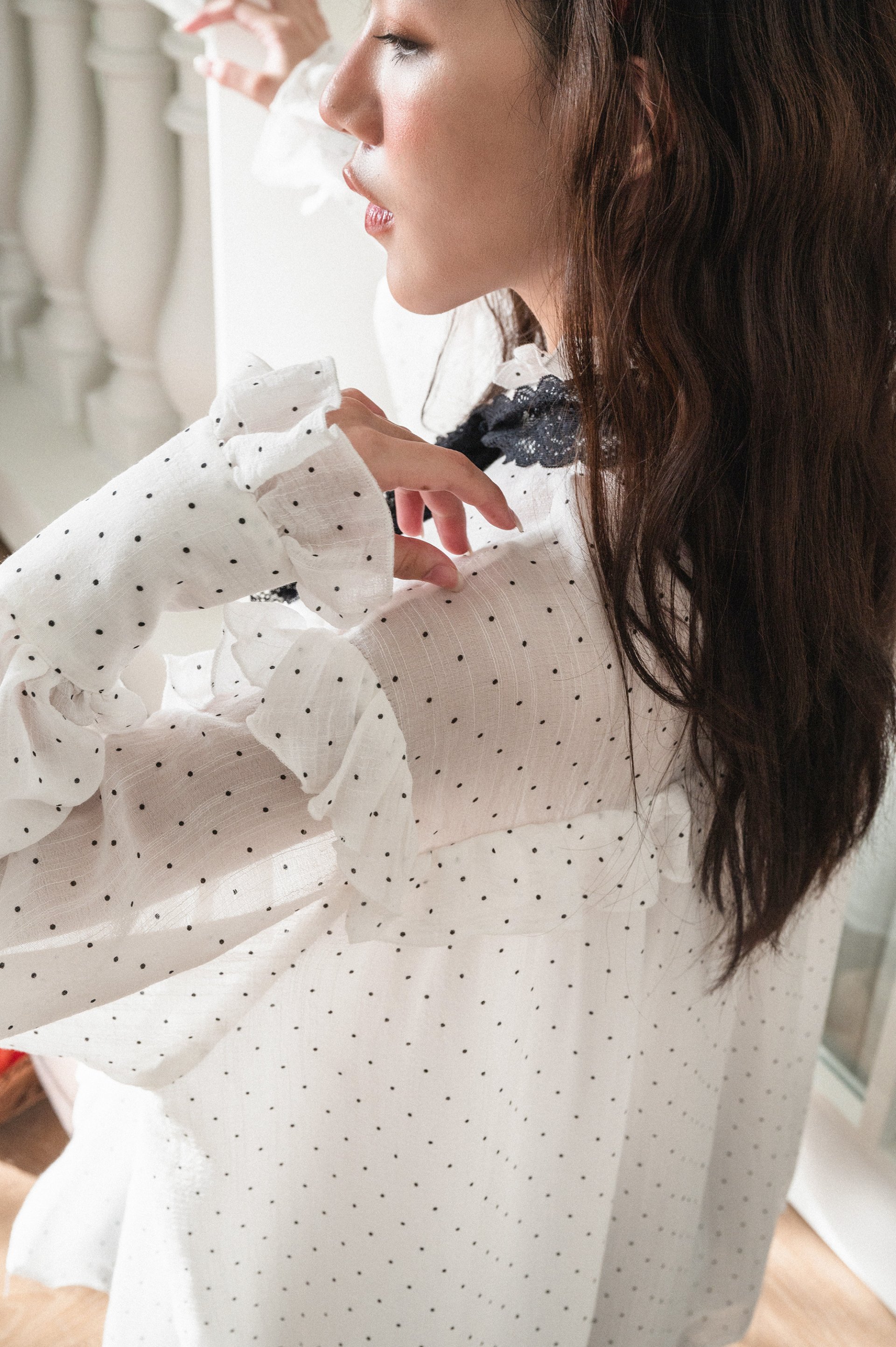 จุดเด่น:  ลายจุดมินิมอล / หน้าสว่าง / ผ้าใส่สบายนุ่มลื่น / ใส่ง่ายทุกวัน / แมทช์ได้หลากหลาย