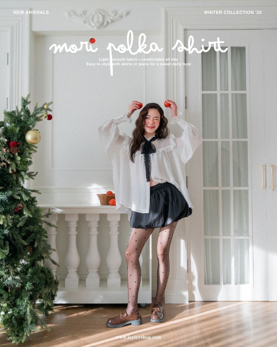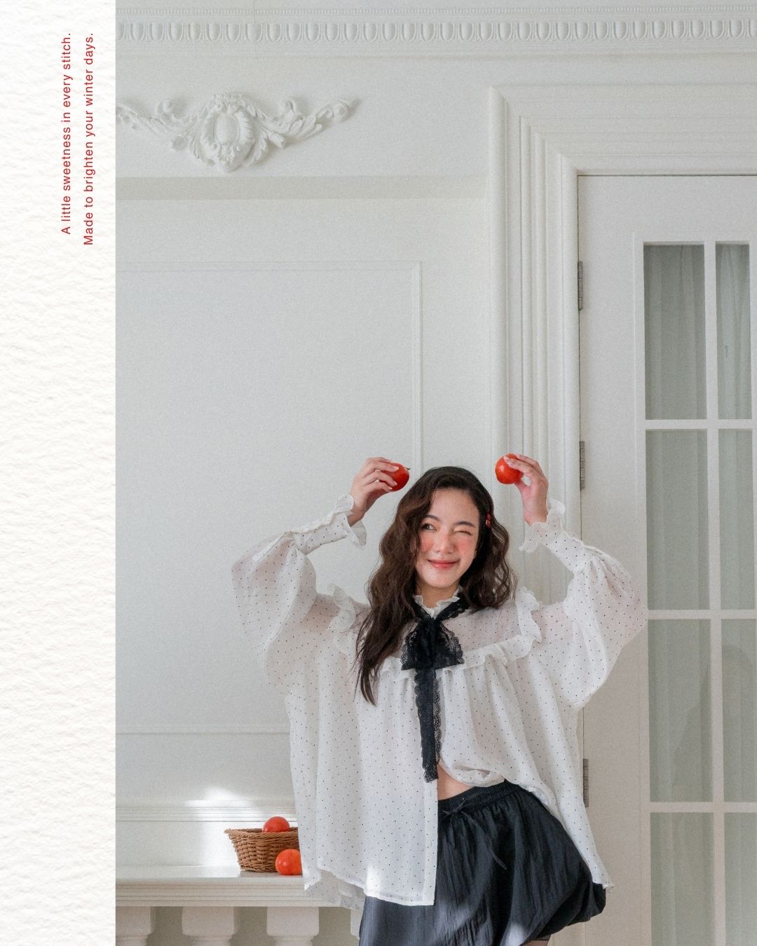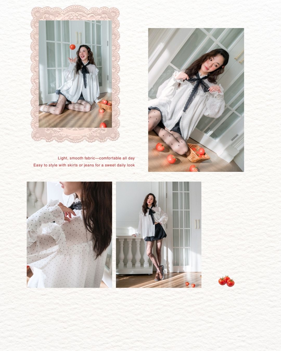 เสื้อเชิ้ต Oversize แพทเทิร์นสุดฮ๊อตของ icyicy ผ้าลายจุดโทนหวาน ให้ลุคสดใสและหน้าไบรท์ทันทีที่ใส่ เนื้อผ้าออร์แกนิค นุ่มๆ ลื่นๆ มีซับในไม่บางเกินไป ใส่สบายทั้งวัน แมทช์ง่ายกับทุกลุค ดีไซน์คอปีนให้ลุคคุณหนู กระดุมหน้า แขนพองๆ น่ารักมาก ใส่แล้วดูสุภาพ ซ่อนความหวานลงตัว เหมาะกับทำงาน คาเฟ่ หรือวันสบายๆ แบบหวานละมุน *มีริบบิ้นลูกไม้ให้ 1 เส้น