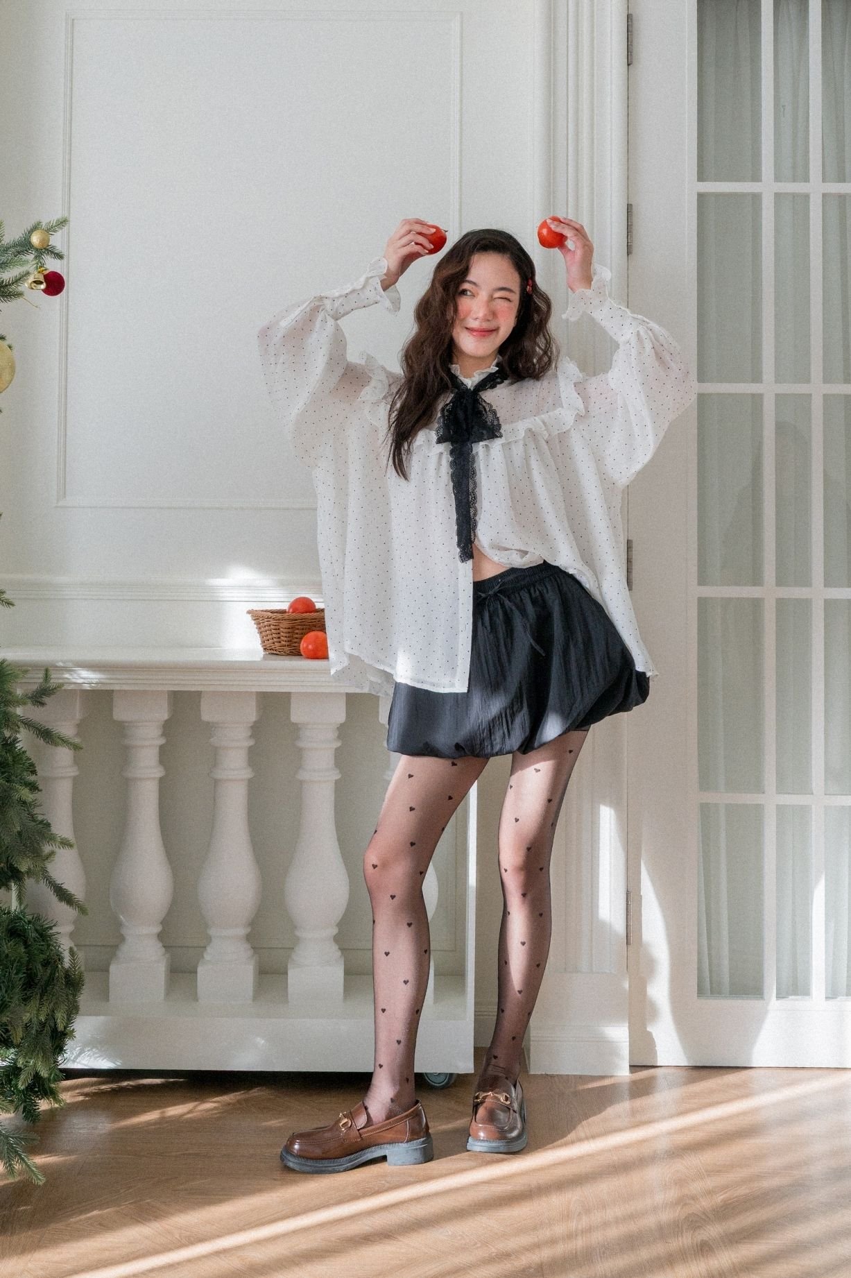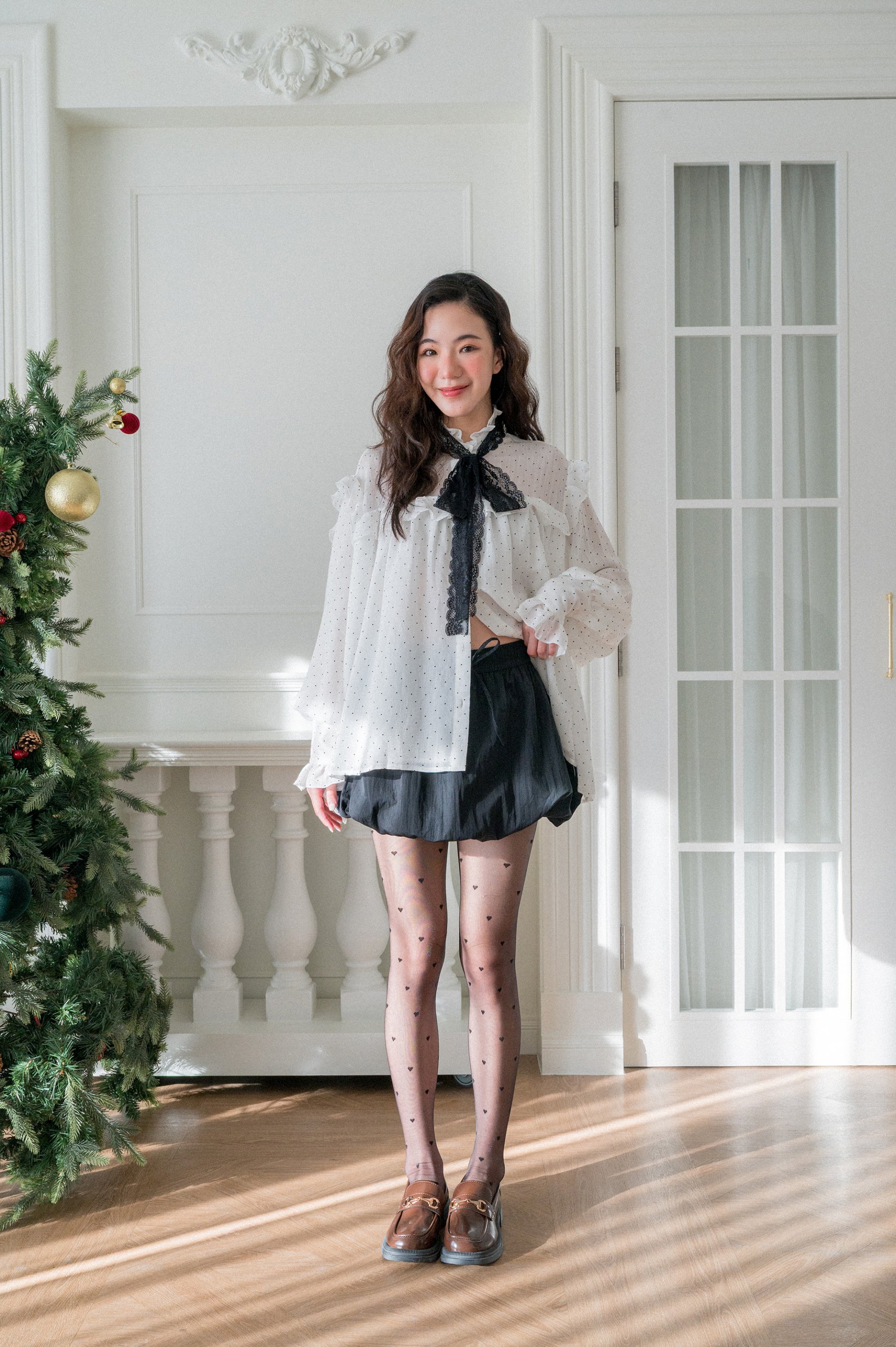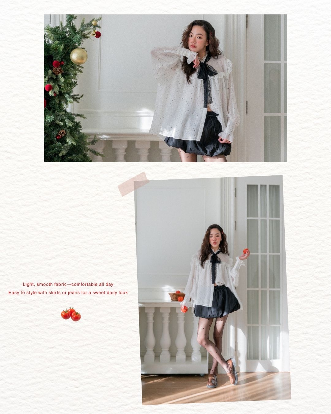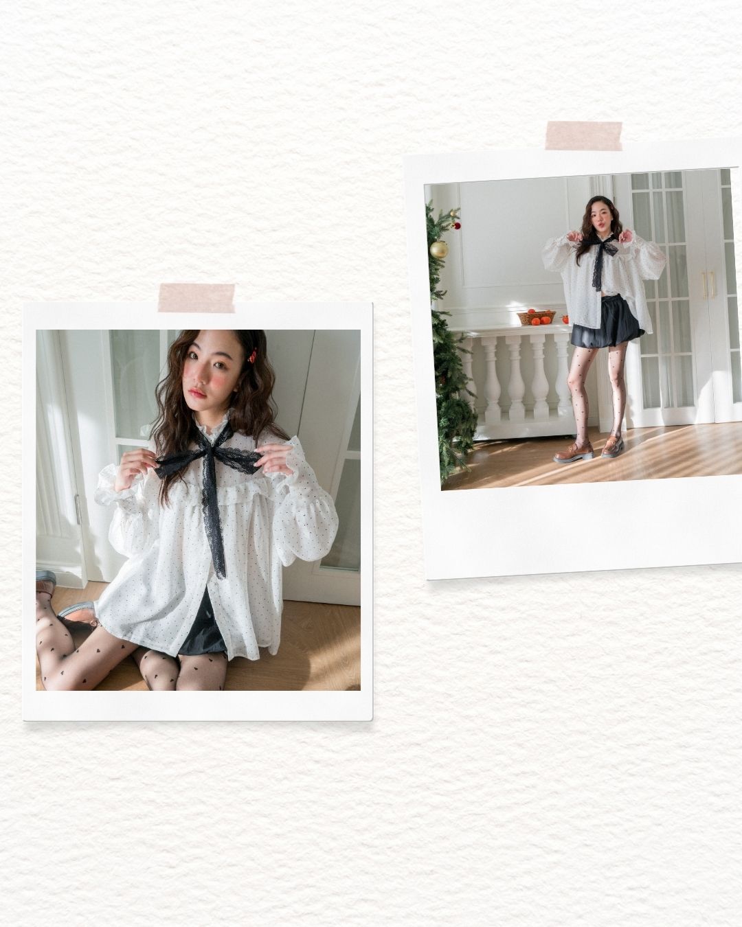 เสื้อเชิ้ต Oversize แพทเทิร์นสุดฮ๊อตของ icyicy ผ้าลายจุดโทนหวาน ให้ลุคสดใสและหน้าไบรท์ทันทีที่ใส่ เนื้อผ้าออร์แกนิค นุ่มๆ ลื่นๆ มีซับในไม่บางเกินไป ใส่สบายทั้งวัน แมทช์ง่ายกับทุกลุค ดีไซน์คอปีนให้ลุคคุณหนู กระดุมหน้า แขนพองๆ น่ารักมาก ใส่แล้วดูสุภาพ ซ่อนความหวานลงตัว เหมาะกับทำงาน คาเฟ่ หรือวันสบายๆ แบบหวานละมุน *มีริบบิ้นลูกไม้ให้ 1 เส้น